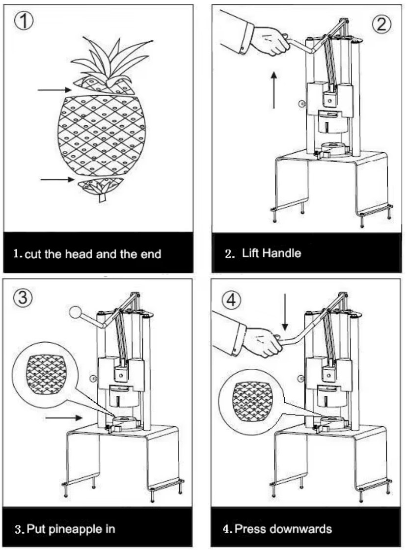 ※ Whole machine is made of stainless steel, safety buckle is safe when placing the pineapple.